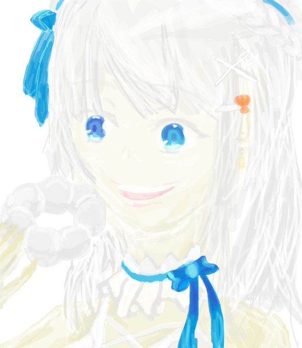 白いポンデリング配信で食べて喜んでいたのが 可愛かったので描きました。 #凪のキャンバス