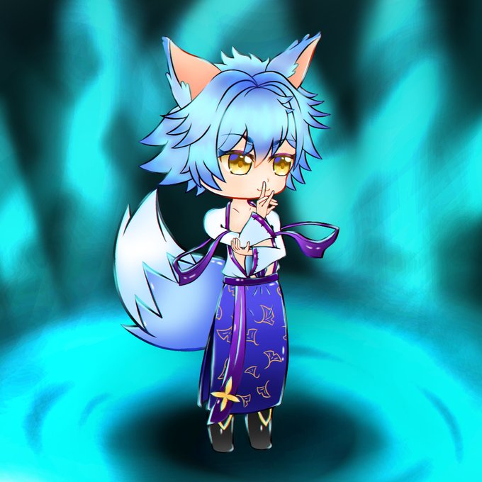 Kitsugi #pixiv今日のお題 #青髪 #SD #chibi #Fox #狐 #shorthair #shota pixiv.net/artworks/99045…
