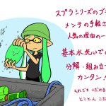 66 118 #ブキメンテ スプラシリーズやバケツはメンテ…というかお手入れが楽そう。 二枚目の絵はダイビングの機材の手入れのイメージです。桶に落ちたりふざけて入ったりしてリスポーン行きになるイカもいるとかいないとか #Splatoon 16/05/20 00:43