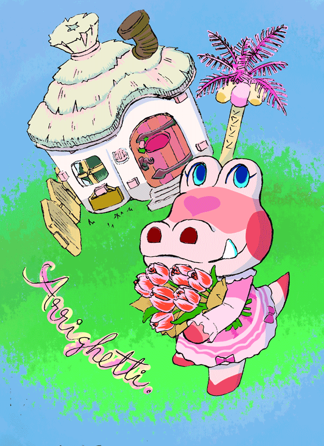 アリゲッティや彼女のおうちが可愛いので 線画取り込みや色塗りの練習も兼ねて描いてみました #どうぶつの森 #AnimalCrossing #ACNH