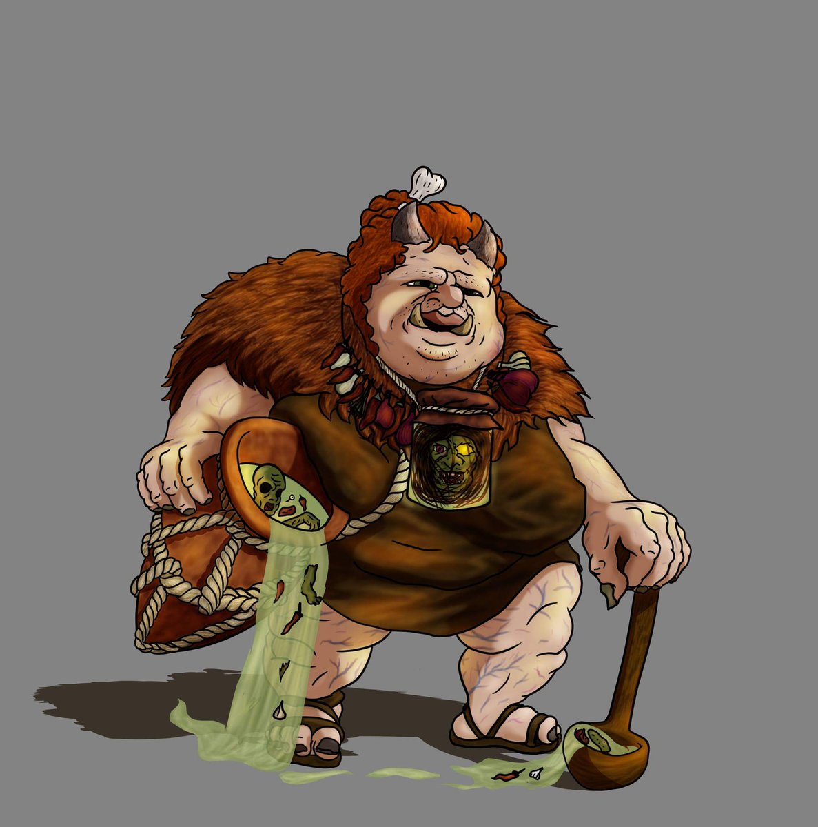 PICKLER OGRE MAMA! inspired by my cultures fairytales of Devi, bit more magical ogres/giants. Female devis are wiser, leaders so heroes used diplomacy rather than violence. she also has a pickled head of a hag for luck and for great recipes. #DnDcharacter #DnD #dndart #mythology