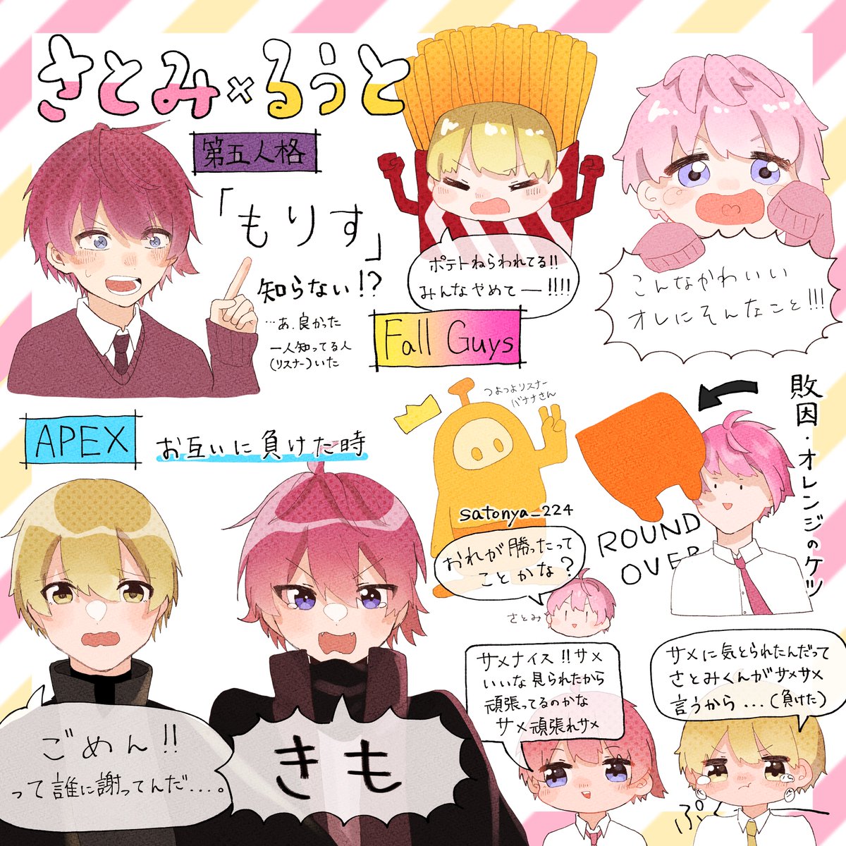 ナンパ技術を教えるなーくんと教わるりとらくん リレー放送たくさん見れて幸せでした。おつぷり!!!🍓✨ (りとらくんのしっぽがどうなっているのか気になっている) #すとぷり48h #ななもりぎゃらりー #りとらくん