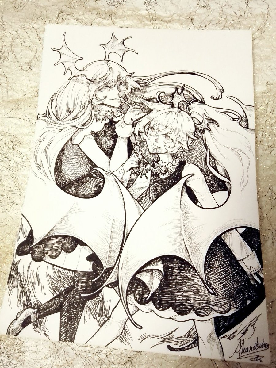 #Inktober Day 3 - bat🦇 (yes, I finally managed to use prompt! Yay!) This one was more tricky, so I hope I didn't forget anyting orz ... Characters are from game The Gray Garden and belongs to wonderful @funamusea 💖 #inktober2022 #inktober2022day3 #funamuseart #thgraygarden
