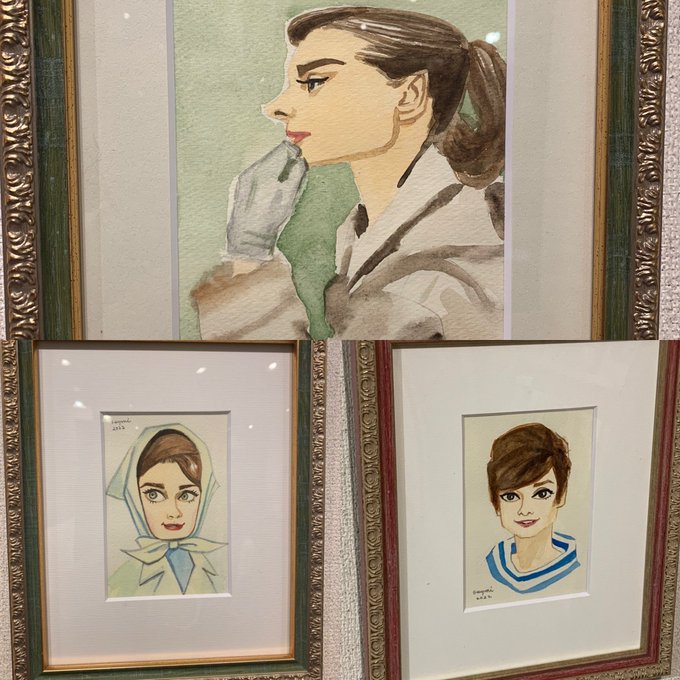 2 7 水彩画 オードリー展 東郷聖美 10/8(土)17時まで 本日は19時までやってます。 あなたの好きなオードリーはいますか? #東郷聖美 #原画販売 #水彩画 #似顔絵 #オードリーヘプバーン 22/10/07 12:37