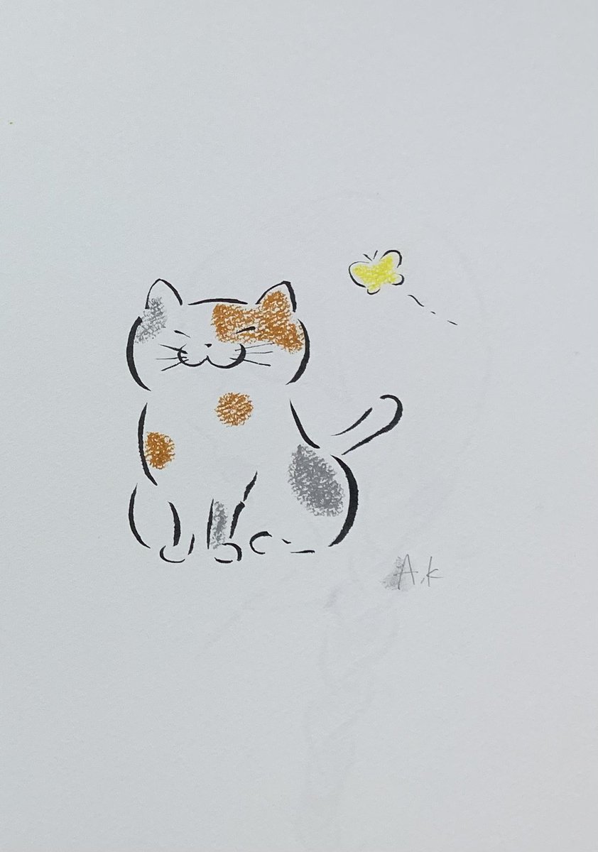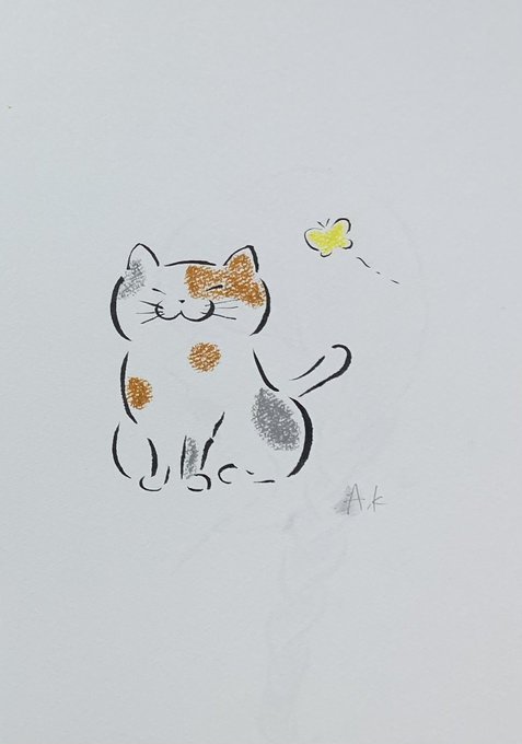 0 1 ちょうちょとねこ。 #クレヨン画 #クレヨン #筆ペン #イラスト #アート #art #artwork #アナログ絵 22/09/29 19:38