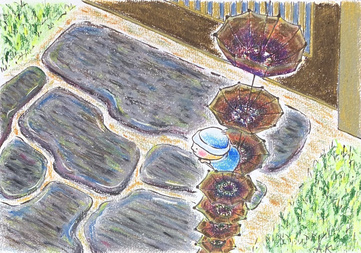1 6 雨上がり、水たまりとこびと。 #クレヨン画 #クレヨン #筆ペン #イラスト #アート #art #artwork #アナログ絵 ※暗かったので撮り直して再掲 22/12/05 23:21