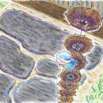 雨上がり、水たまりとこびと。 #クレヨン画 #クレヨン #筆ペン #イラスト #アート #art #artwork #アナログ絵 ※暗かったので撮り直して再掲