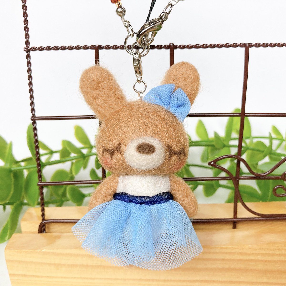 らぶりぃうさちゃん 茶色 ワンピース(白×水色) 羊毛フェルト ストラップ バッグチャーム minne.com/items/36200671 #minne #羊毛フェルト #うさぎ #ワンピース twitter.com/akiako_ako/sta…