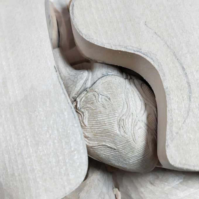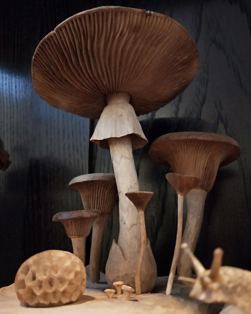 地味な作業ですが、 ひたすらコツコツ彫ってます。 #キノコ #木彫 #シナ材 #小島秋彦 #fungi #woodsculpture #chineselumber #akihikokojima