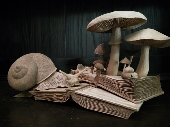 シメジの彫刻。 野生のシメジではなく、 パックのシメジをイメージして作りました。 (前回の投稿より少しボリュームを増やしました。) 後日、個展会場に追加で納品させて頂きます。 #ボリス雑貨店 #シメジ #木彫 #小島秋彦 #Shimejimushroom #akihikokojima