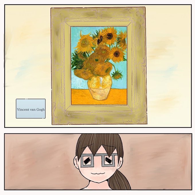 【もし今ゴッホが生きていたら~if Van Gogh were alive now,~】 ゴッホ展とタイミングが合ったので描きました。 (本日でゴッホ展最終日ですが...) こちらにこの漫画を書いた経緯など書いています。 Twitterの文字数では足りないので是非ご覧下さい。 akimiessay.com/if-van-gogh-we… #ひまわり