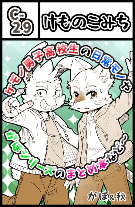 #けもケット13 新刊 C-29 けものこみち ケモノな男子がダベるだけ A5 / 44P / 500円 いつも通りのケモノ男子学生をメインとした本です。主にケモDK。 ゆるい日常マンガって感じでーす! 今回は薄め!良ければで〜!!🙌 #けものこみち
