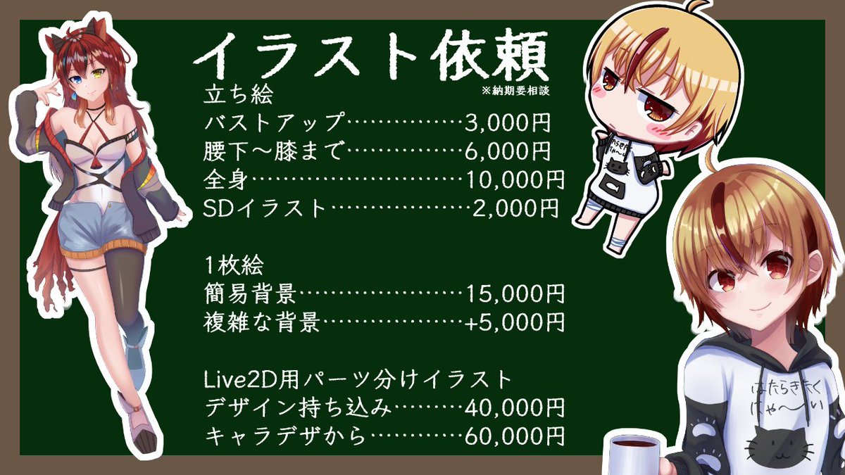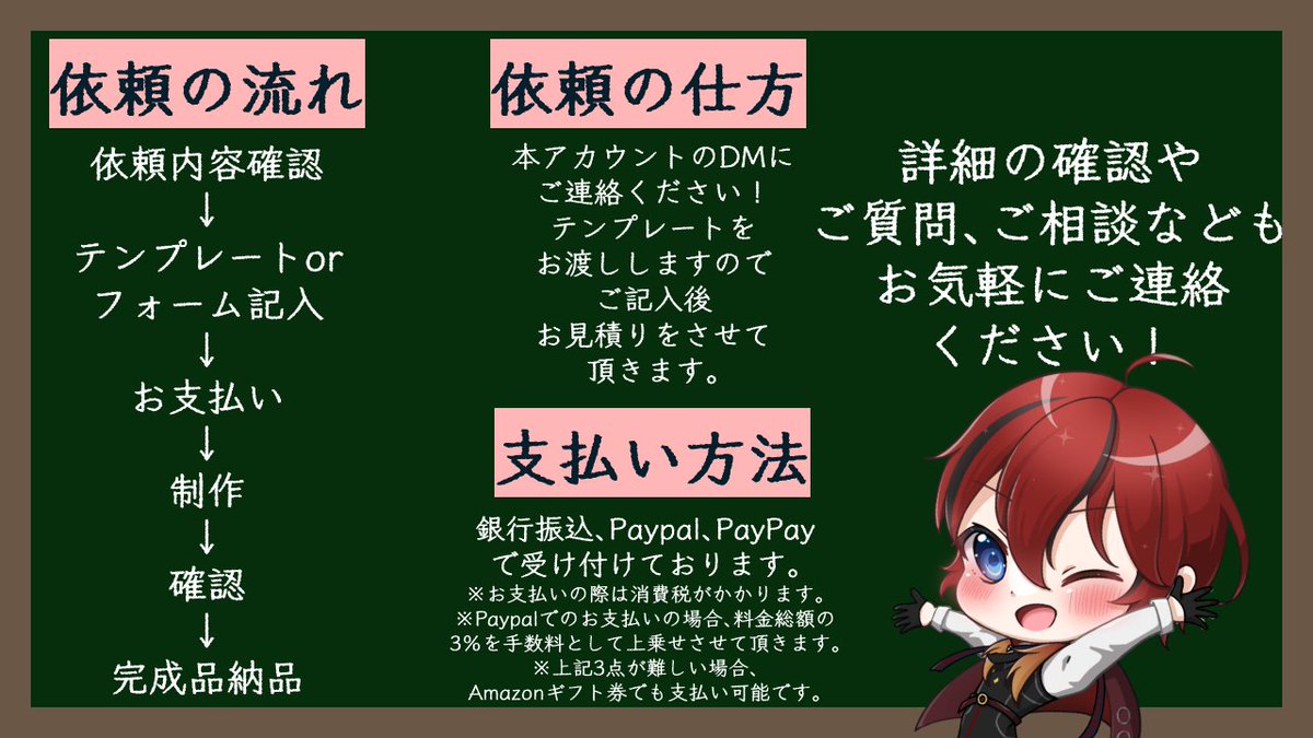 Live2Dやイラスト、サムネイル制作などの依頼を受け付けております❣ まずはTwitterのDMまでご連絡ください◎ 現在SKIMA準備中! ⚡Live2D実績 twitter.com/i/events/15387… ⚡イラスト・その他実績 twitter.com/i/events/15630… #依頼受付中 #有償依頼 #Live2D #イラスト依頼