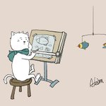 11 45 「レオの休日」 釣りと珈琲と洗濯と、心地いいウクレレの音色。 ウクレレといえば荻野目洋子さんですね。 #イラスト #猫のイラスト #猫イラスト #ウクレレ 22/05/29 19:31