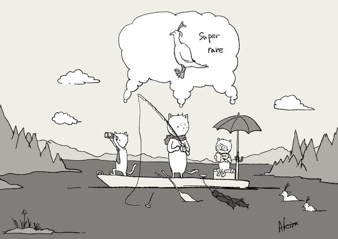 「あれ、そこにいるのは?」 #イラスト #釣りイラスト #猫イラスト