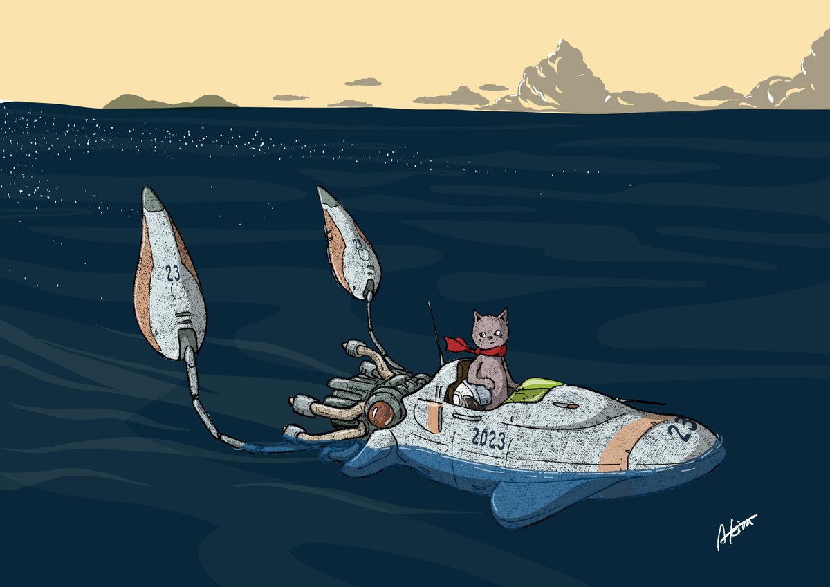 深海の女神 #イラスト #宝探し #猫イラスト #トレジャーハンター #深海艇 #treasurehunter