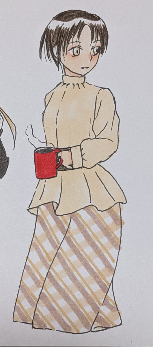 2022年9月5日 本日のドローイング。 秋めいた服装を。 ポーズも視線も髪型も服装も完全オリジナル。 少しだけ早く起きたから目覚めのコーヒーを淹れて同居人を起こしているところ、ってイメージ。 #秋田友のお絵描き帳 #イラスト #イラスト好きな人と繋がりたい #イラスト好きさんと繋がりたい