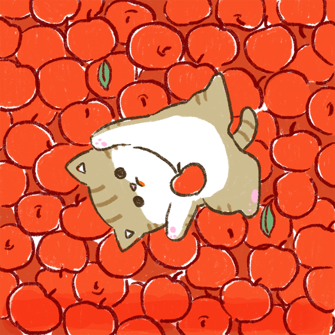 お昼だニャン🐈 「つがにゃん」だよ。 HPもみてね!jreast.co.jp/akita/meettheh… #東北DC #4コマ漫画 #akitarailtrip #つがにゃん #りんご