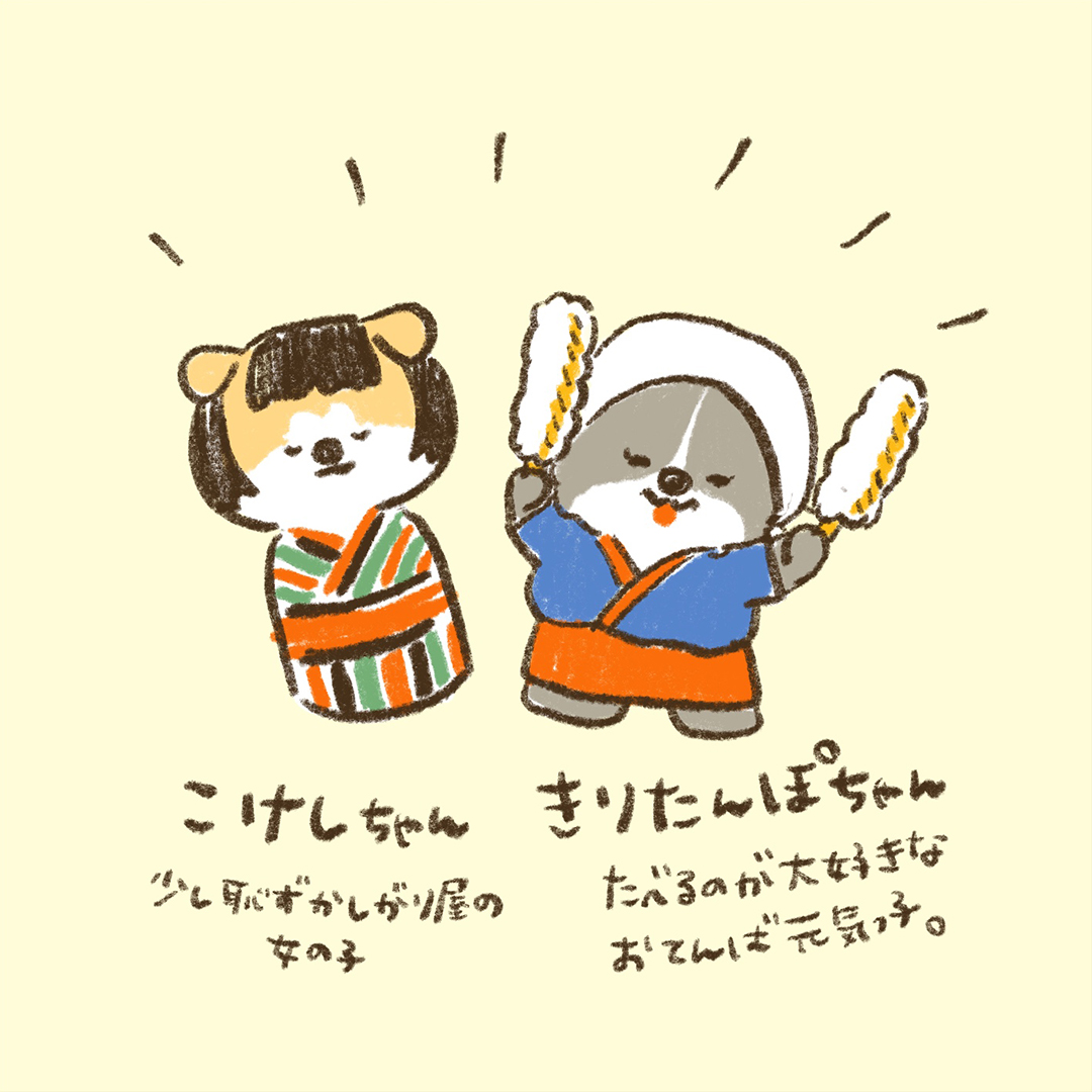 こんにちわん🐈「あきお」だよ。 新しいおともだちを紹介するよ✌ jreast.co.jp/akita/meettheh… #東北DC #4コマ漫画 #akitarailtrip #こけしちゃん #きりたんぽちゃん