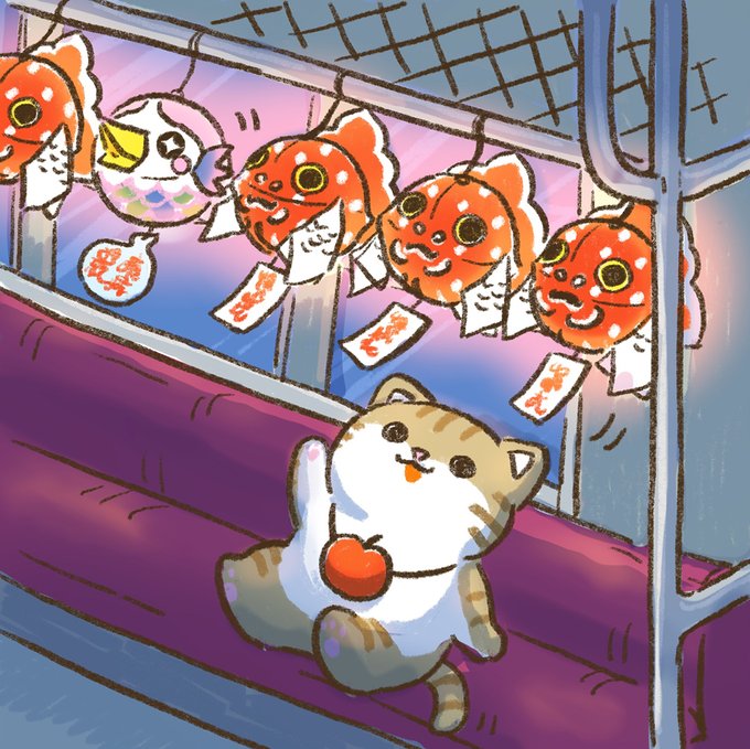 こんばんニャン🐈「つがにゃん」だよ。 金魚ねぷた列車きれいだよ🚃 jreast.co.jp/akita/meettheh… #東北DC #4コマ漫画 #akitarailtrip #つがにゃん #金魚ねぷた