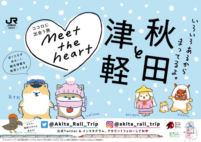 こんにちわん🐶 「あきお」だよ。 東日本エリアの車内でボクたちを見つけられるかなぁ~(‘ω’)ノ jreast.co.jp/akita/meettheh… #東北DC #4コマ漫画 #akitarailtrip #つがにゃん #あきお