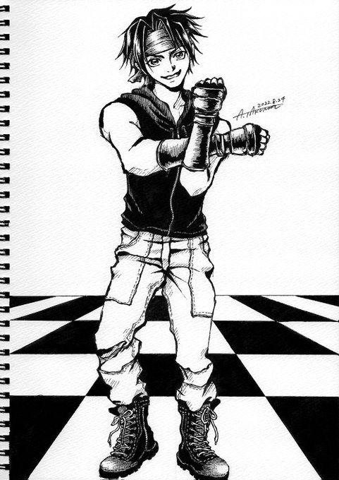 @takayamaff さんのこのスマブラ画がカッコ良すぎて、参考にさせてもらい、習作描きました。 でも手がなかなか上手く描けず🥲眼力で勝負! twitter.com/takayamaff/sta…