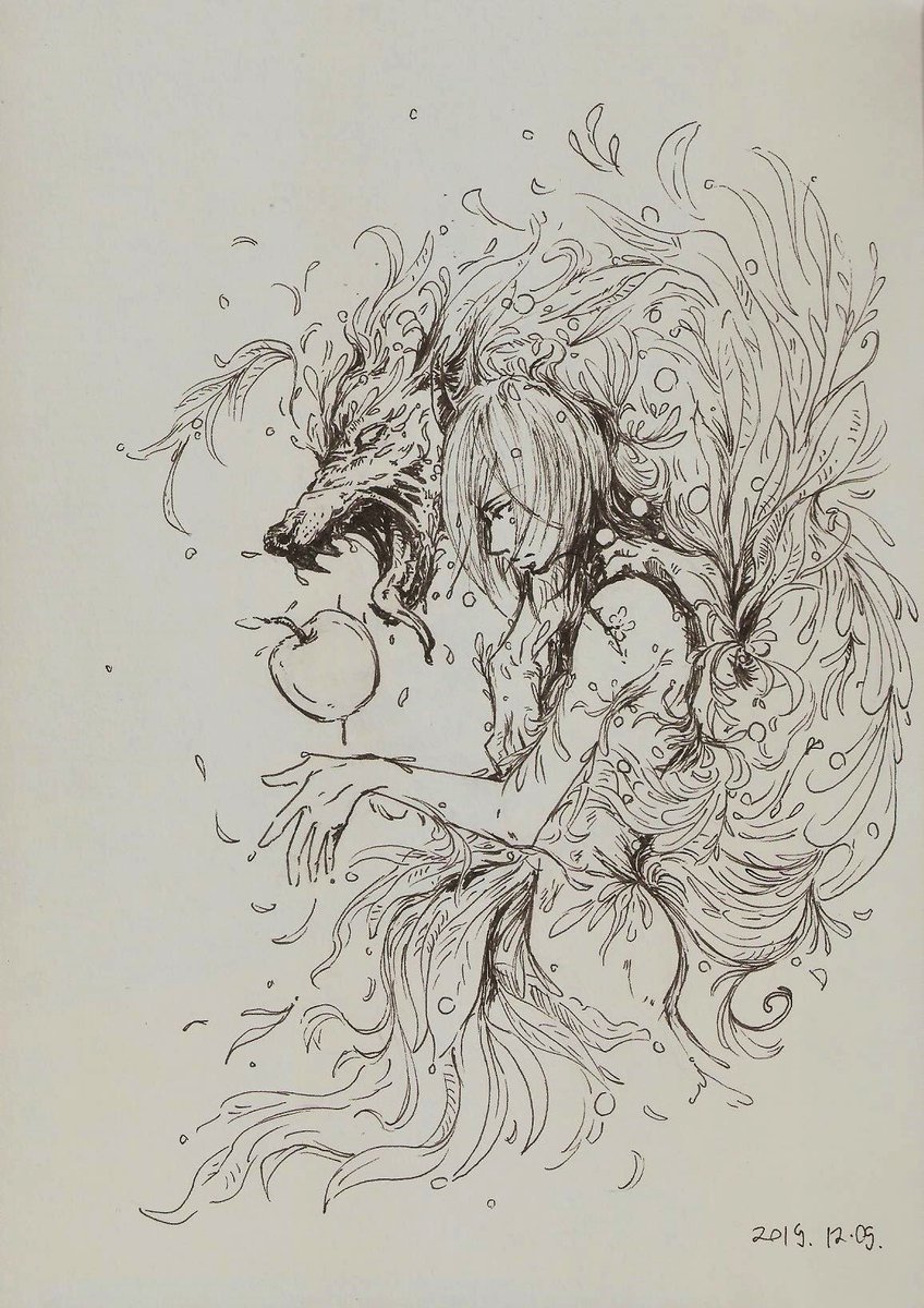 5 36 #Inktober2019 #inktober #blackandwhite #ripe #catch #creature #drawing #cagedbird 19/12/10 06:50
