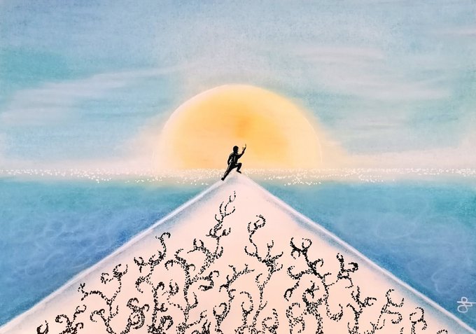Aujourd'hui pour le #inktober2022challenge du douzième jour je vous invite à rejoindre la balade solitaire de mon personnage. Perdu, dans un paysage désertique, il est comme oublié par les autres... Bonne soirée et à demain #inktober2022 #forget #oublier #inktober2022day12