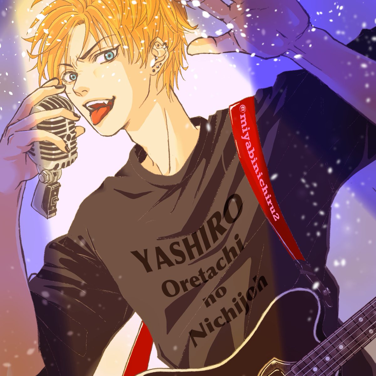 @Miyabinichiru2 #フォロワーさんの推しが描きたい ①やしろ様オリジナルの「俺たちの日常」より、鬼塚社くんを描かせて頂きました。 バンドマンでVo & Guitar担当だとのことで、私の趣味を詰め込んでしまったため誰オマ状態ですし、セクシーキャラ設定に沿えず且つ幼い……ごめんなさい💦
