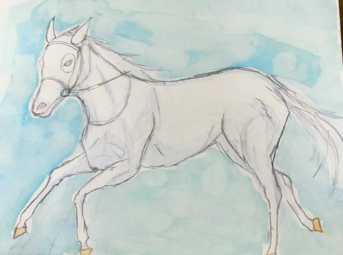 ソダシ ※手網が不自然ですが… ※騎手さん・ゼッケン無し #イラスト #馬 #水彩画
