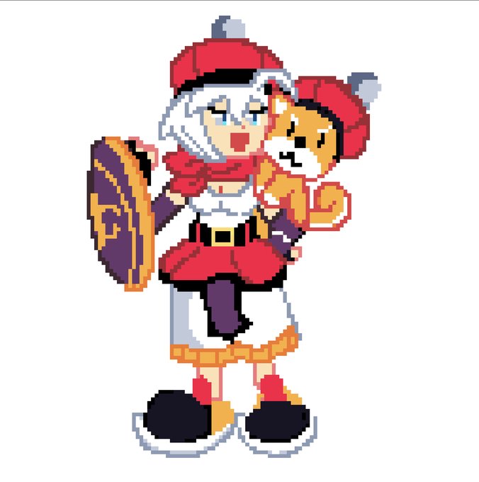 Had a go at pixelling 'La-La And Her Dog Onii.' Equipped her with her pixelated shield. Kinda new to pixels (but I've always wanted to use the drawing tool!) So getting down the simple/initial design was quite difficult... #Pixel #Pixels #ConceptArt #Original #DigitalArt