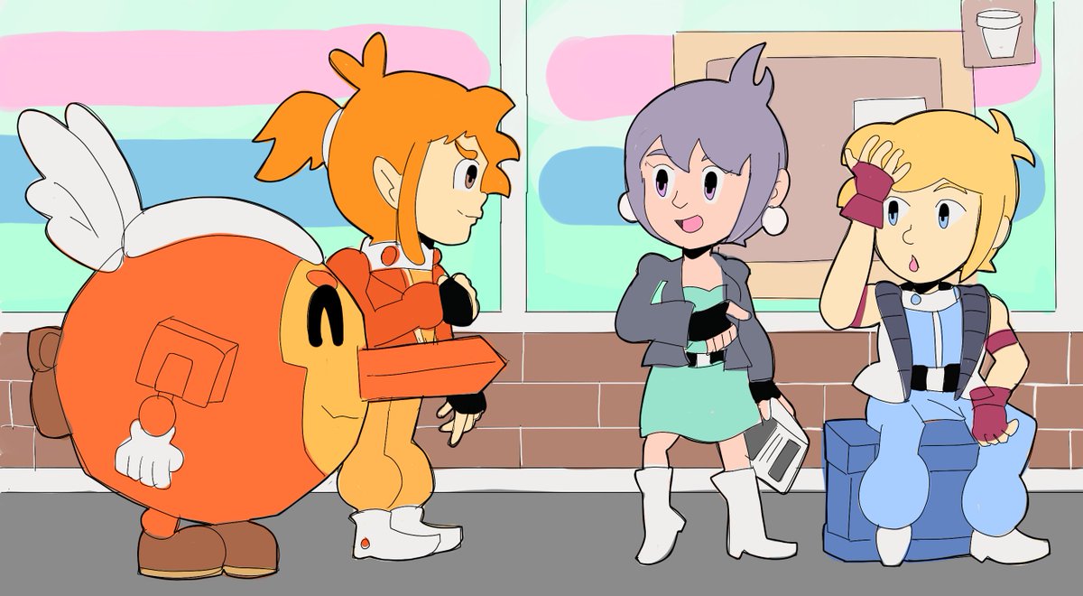 Redrew the background from an anime show, and situated the 'Spaceship Capsule Crashers' characters at the size I think they should be, so hopefully this drawing can portray the correct sizes... #ConceptArt #Original #Background #Shop #Drawing #Illustration
