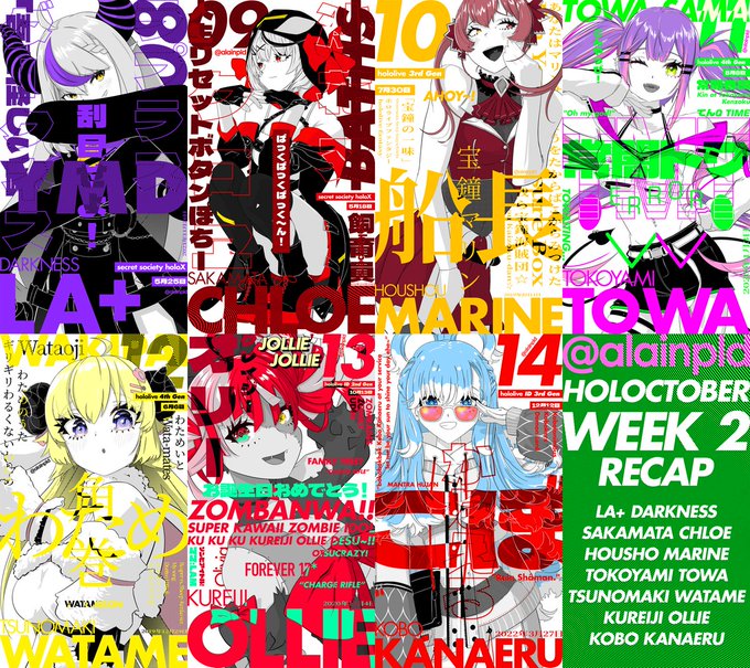 #HOLOctober Recap Days 8-14 #Laplus_Artdesu #さかまた飼育日記 #マリンのお宝 #TOWART #つのまきあーと #graveyART #AeruSeni