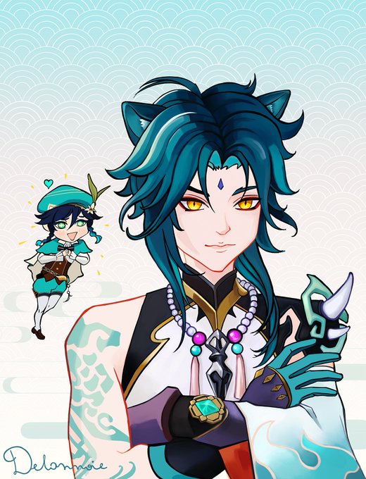 #原神 #genshinimpactfanart #xiaoven Venti has cat-allergy, but Xiao with cat-ears is too cute to stay away 💚 delannoie.tumblr.com/post/660231422…