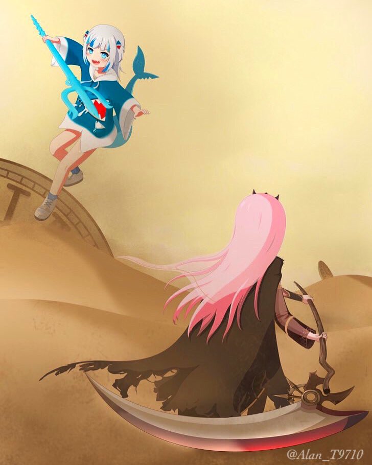 🦈:He's gonna kill me!!! 🕵️♀️:I'm coming. #HololiveEN #gawrgura #gurart #ameliaRT #これでフォロワーさん増えました