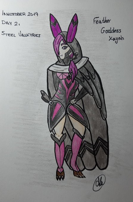 Día 2: Steel Valkyries⚓ Xayah diosa de las plumas He llegado a la conclusión de que diseñar skins no es lo mío... #Inktober2019 #Inkotober #Skintober #ArtOfLegends #LeagueOfLegends