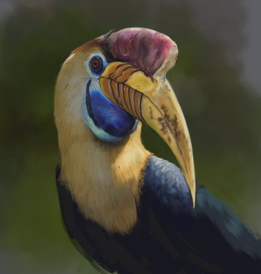 Knobbed Hornbill - A "not-very-quick" study to warm up and deal with creative block #digitalpaint #artistsontwitter #birds #hornbill