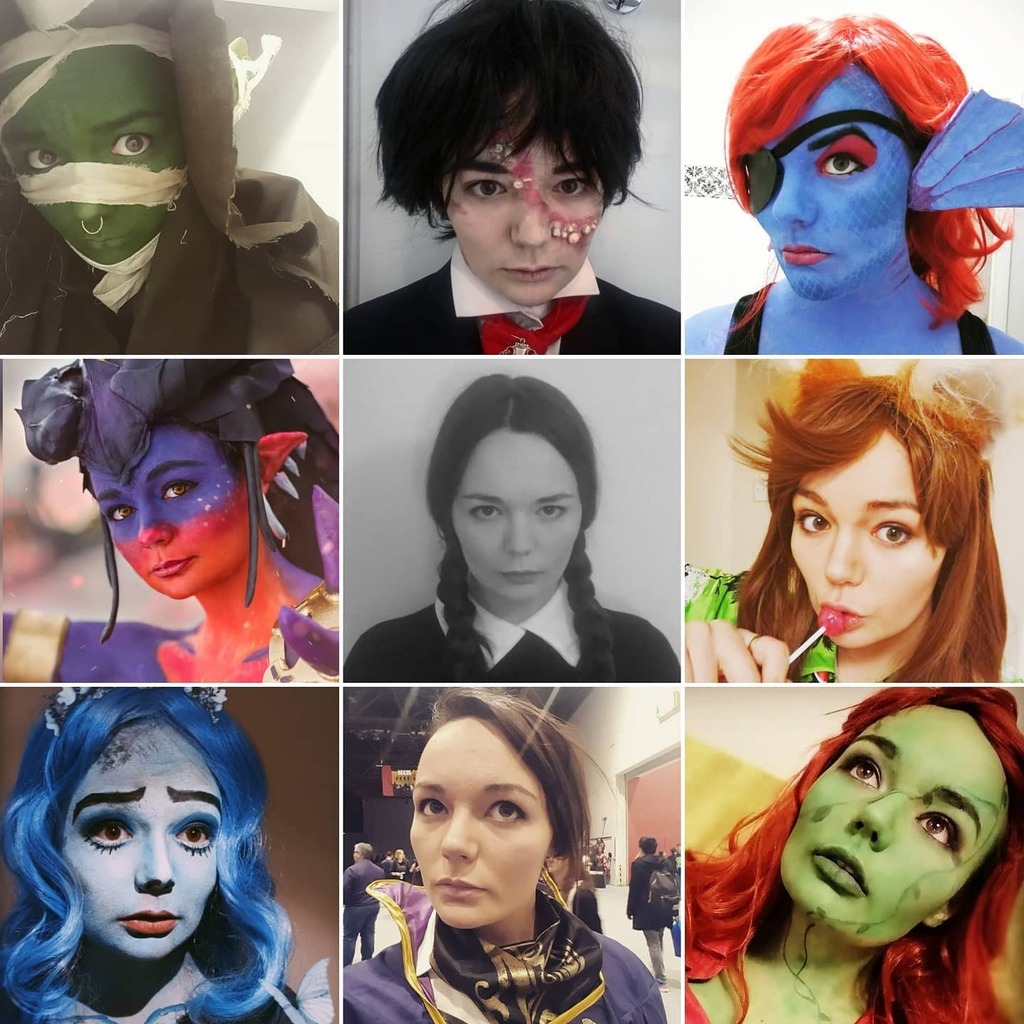 Jumping on the #faceyourcosplay bandwagon 😘 I've been a veritable rainbow over the past few years, which is your favourite? #cosplay #nottthebrave #beelzebub #undyne #symmetra #wednesdayaddams #nickwilde #corpsebride #emilykaldwin #poisonivy #facepa… instagr.am/p/CDhFbyuD86w/
