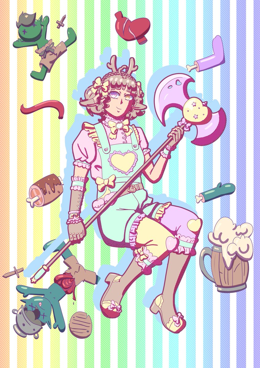So I was inspired by my own love of dnd. But also @momo_obrien 's love of dnd and pastels. This is what came of it. A tiefling barbarian named Honey. I'll be working my way through other classes as well. #DnDcharacter #dndart #kawaii #barbarian