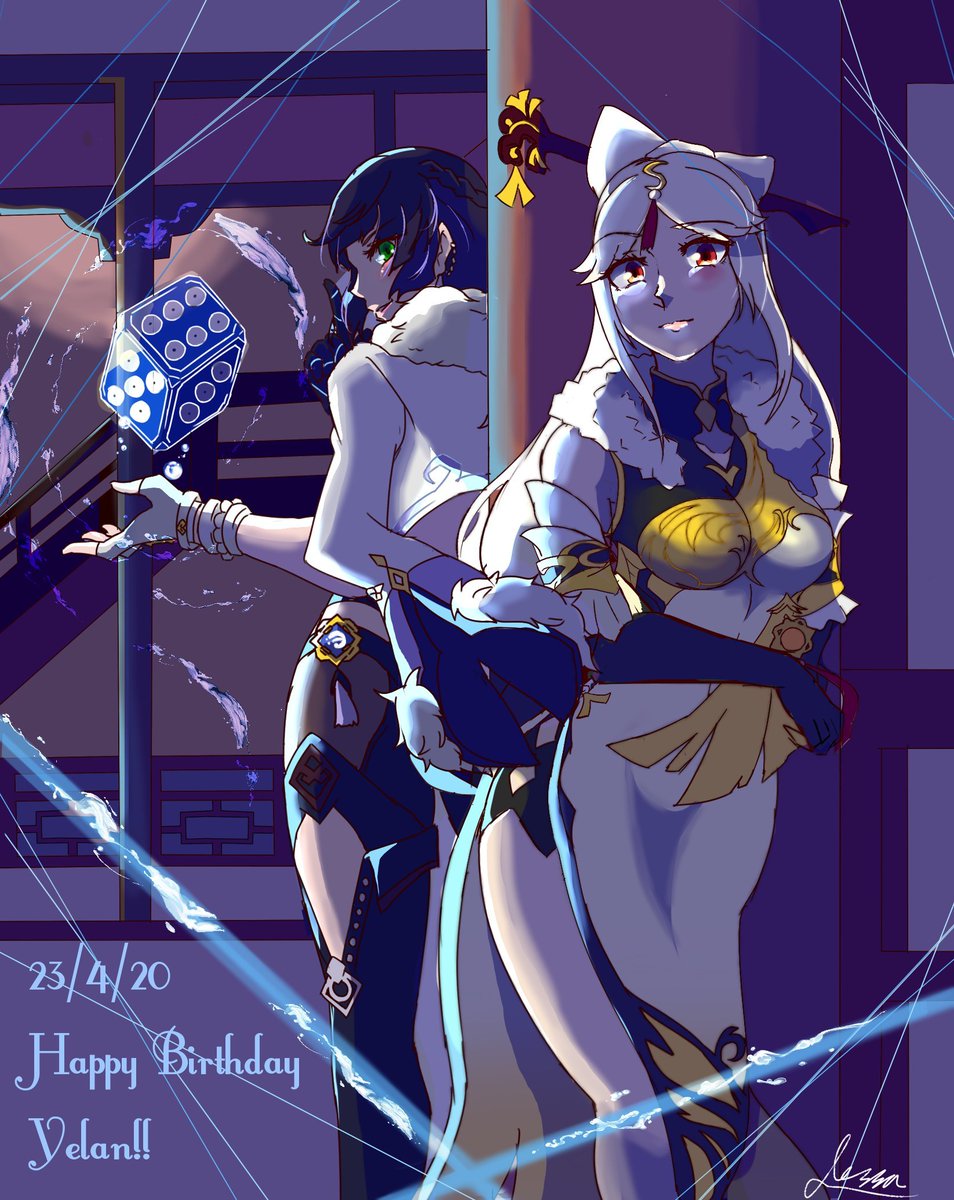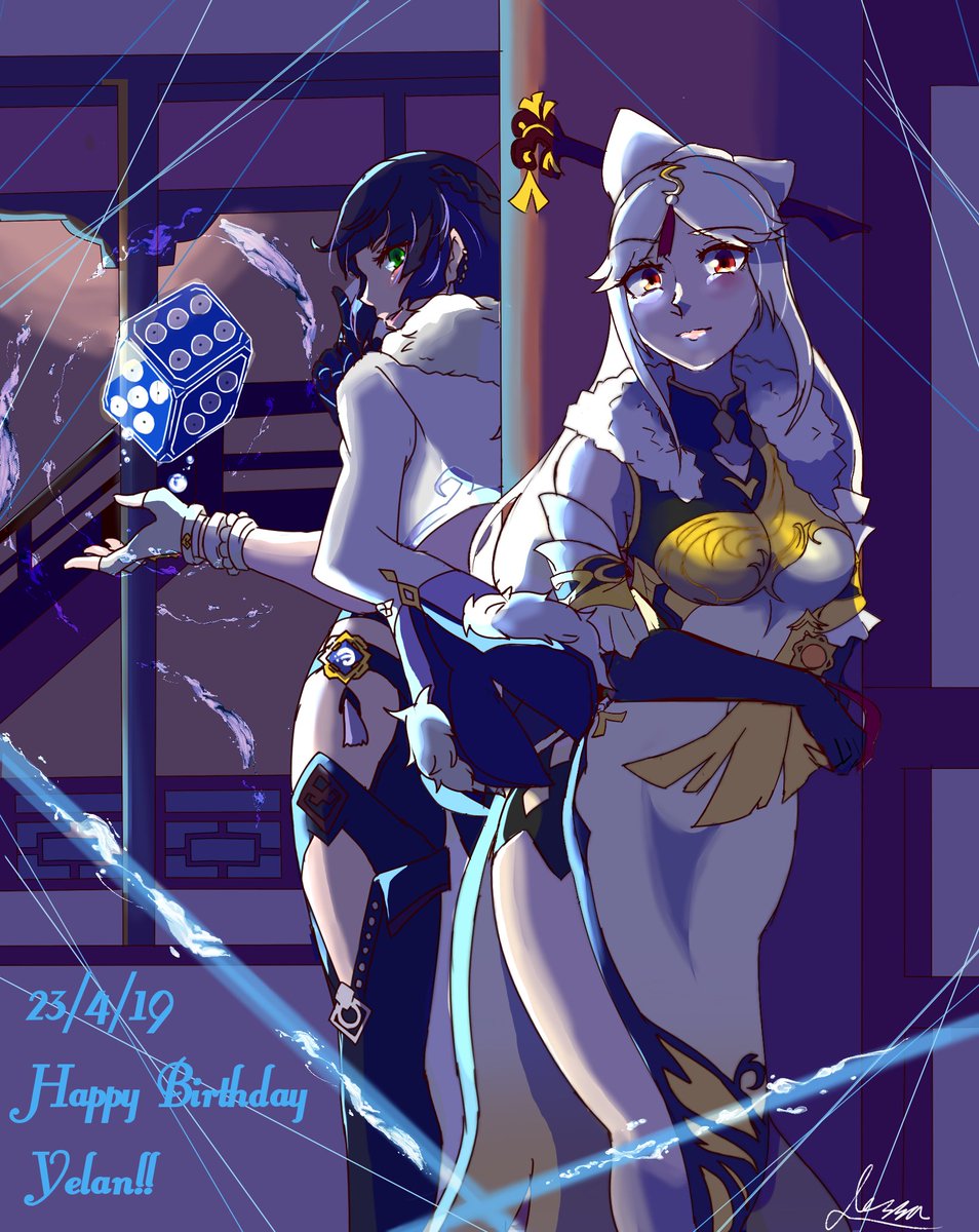 #夜蘭生誕祭2023 #Yelan 「全く、変数というのは時と場所を選ばないわね...にしても今の情報交換の場に出くわしたのが君じゃなかったら即縛り上げていたところよ...事が済んだら食事でもいかが?」的な... おたおめ夜蘭さん美しくてカッコいい貴女が大好きです......