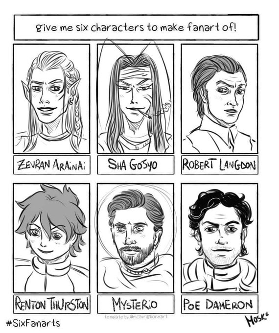 #SixFanarts #SixFanartsChallenge #DragonAge #saiyuki #poedameron #zevran #starwars #robertlangdon #eurekaseven #rentonthurston #mysterio #spiderman #Marvel