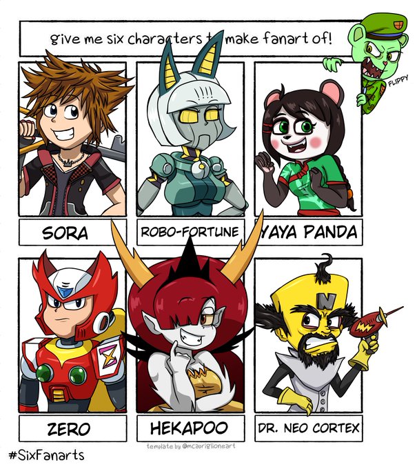 Six Fanart Challenge Por fin lo termine!! Lo que dieron las sugerencias: @Xinsed @DvMarnie @MrASpartaX37 @charlie_exe777 @JonkerKujo @RaccoonMUGEN @TakToyanikawaii #SixFanartsChallenge #myart #fanart #SixFanarts
