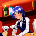 #アリスギアお絵かき アオイ「いらっしゃ...あら隊長さん」 隊「遅くなった...マティーニを、二つ」 アオイ「二つ...?お一人のように見えますが」 隊「いるだろ?目の前に...今日祝われるべき人が」 アオイ「あら...なんて口の上手い。ではお言葉に甘えて...」 って乾杯する強めの幻覚見てた....