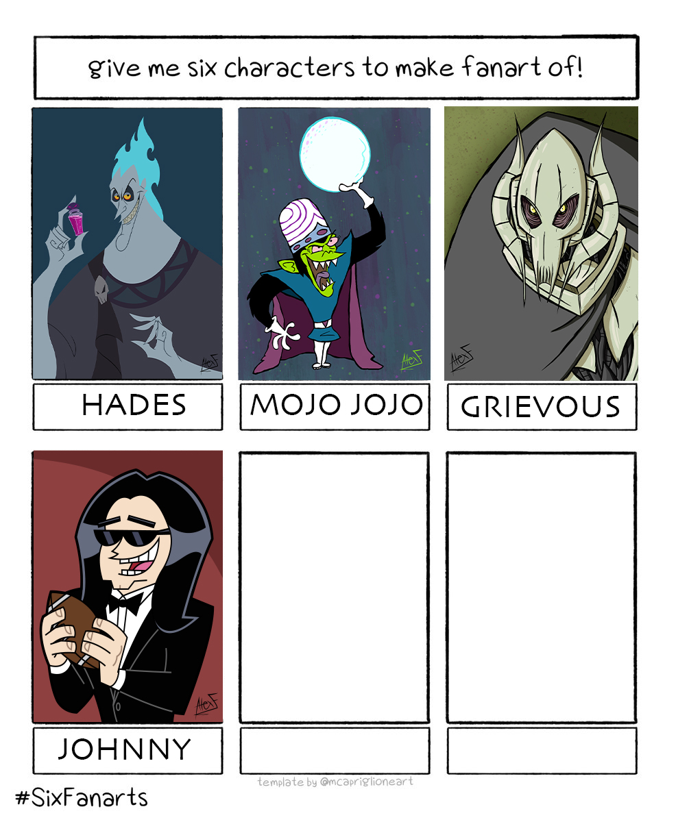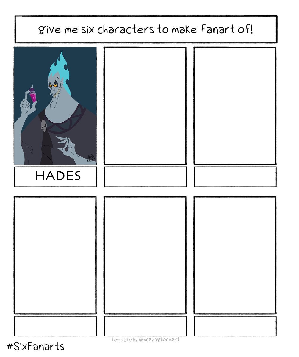 First up is Hades! Five more to go! If you have any suggestions for these five empty slots, don’t hold back! This is a lot of fun! #givemesixcharacterstomakefanartof #hades #hercules #disney #disneyhercules #art #cartoonstyle #cartoon #samuraijack #sixfanarts #sixfanartschallenge