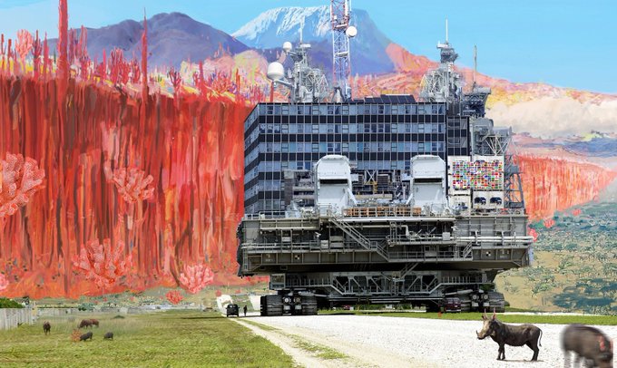 Chani and Shai-Hulud petitioning God to hear their prayers and return them accross the wastes to Sietch.. i wanted the Worm to be ominous when quiescent, like a knights battle helm.. then like a baleful red eye.. then a terrible roaring thermonuclear furnace #Dune