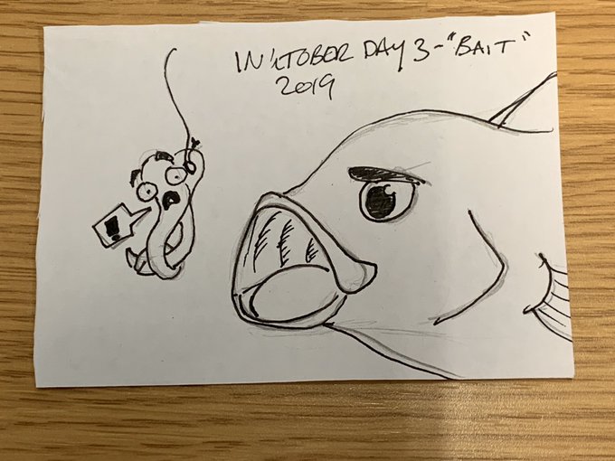 #Inktober2019 #inktoberday3 rushed this last one a bit so not very happy with it. Might have another go tomorrow. For bait I have drawn a fish and a worm.