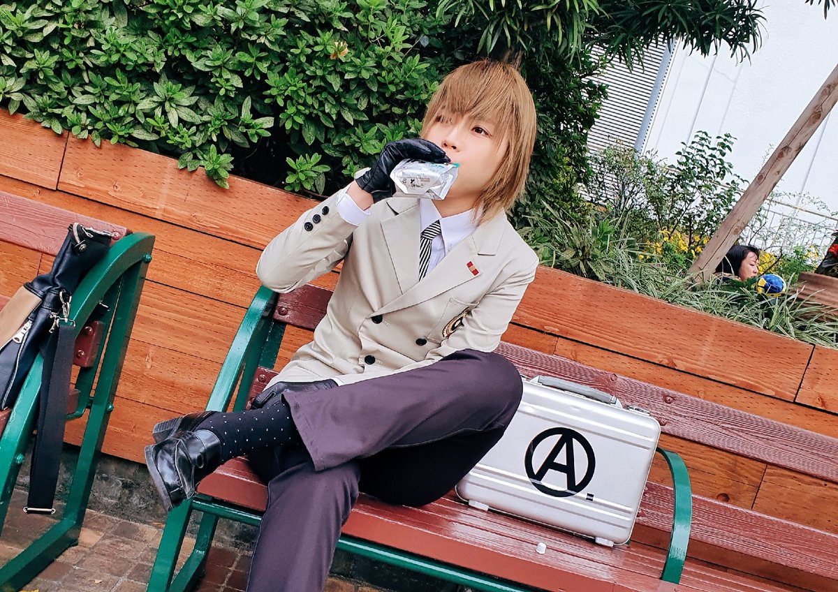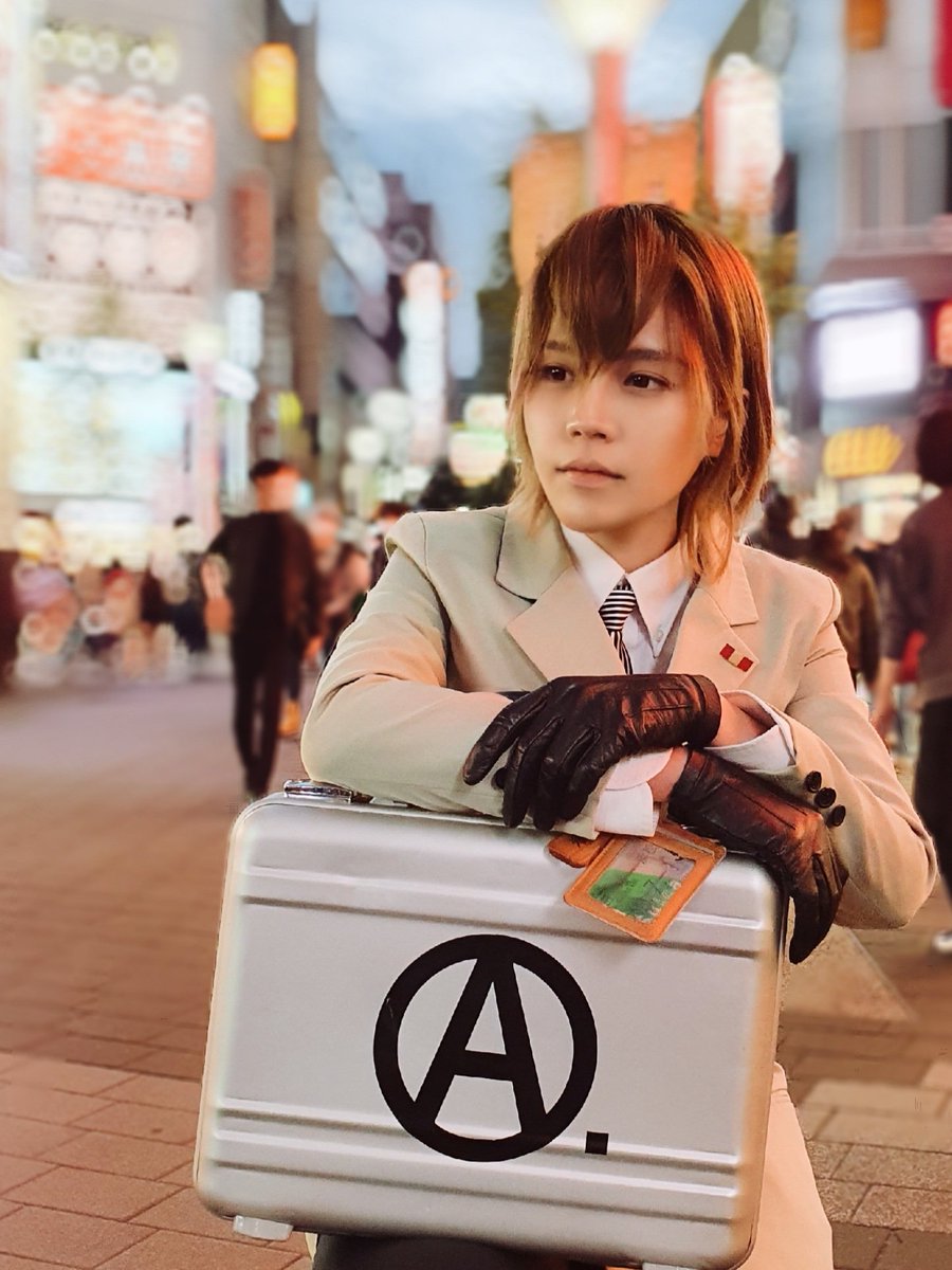 Goro Akechi. Mug shot. 🤣 Ok no not really, more like a yearbook photo? #アコスタ池袋 #Halloween2020 #Persona5