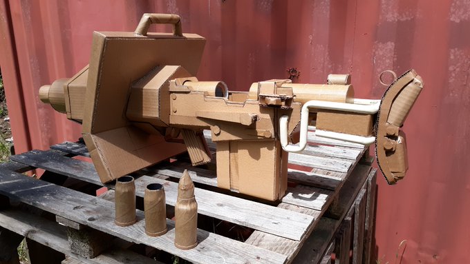 Strike Witches - Hannelore Kummel. 8th Panzer Regiment weapon out of cardboard!📦 I got it all painted and weathered! Even made a cute little wooden lion charm for it!🦁😊 #cosplay #ストライクウィッチーズ #コスプレイヤーさんと繋がりたい
