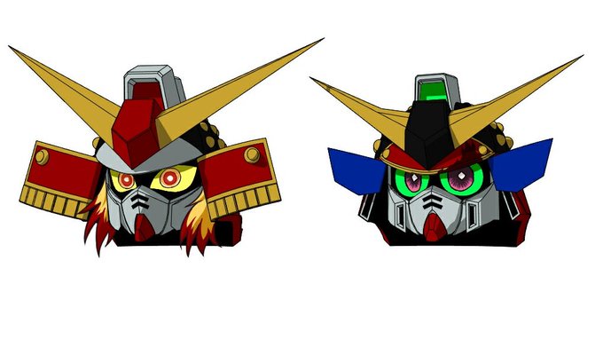 240 727 ふと鬼滅の眼の描き方、真ん中白抜きでSDガンダムと似てるなー使えるかなーと思ったのでやってみた🤔 煉獄武者頑駄無と竈門荒駆主…かな? 20/11/10 09:07