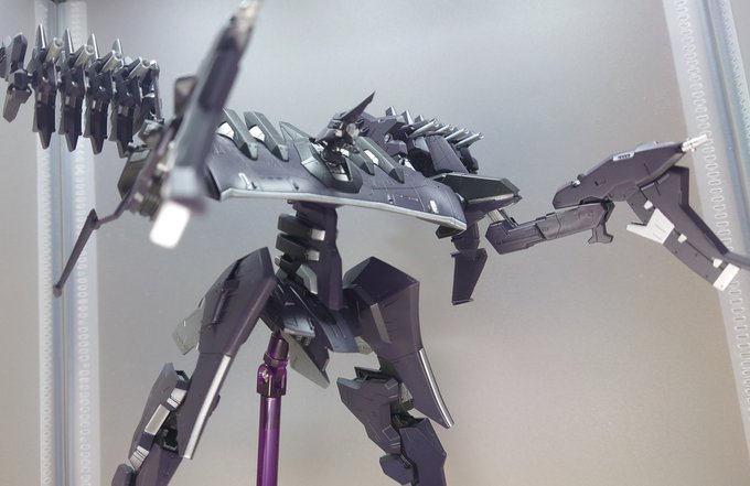 #今月作ったプラモ晒そうぜ #アーマード・コア V.I フラジール終わり! パーツ固定しようとしたら内側から接着剤が溢れ出たりと散々な目にあったけど、とりあえず最後までやり切りました(^^;